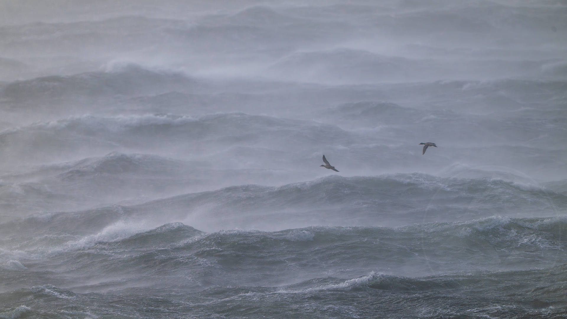 Mallards crossing a stormy sea!