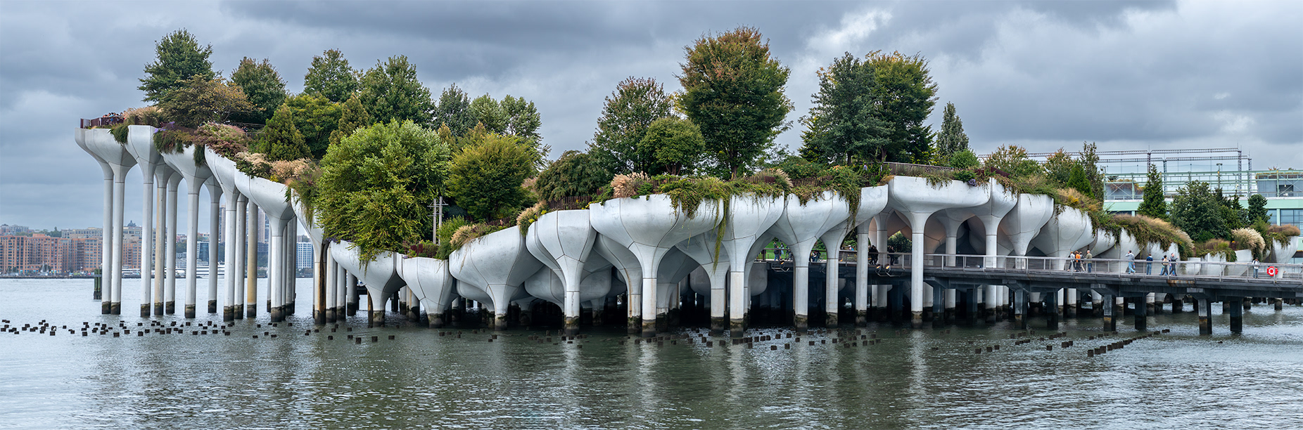 We left the One World Trade Center and followed the waterfront north along the western side of Manhattan. After a while, we reached Little Island, a playfully designed artificial island extending from Pier 54. It is a fascinating structure, with winding paths and open spaces that invite exploration. From the island, there are fine views towards southern Manhattan and New Jersey.