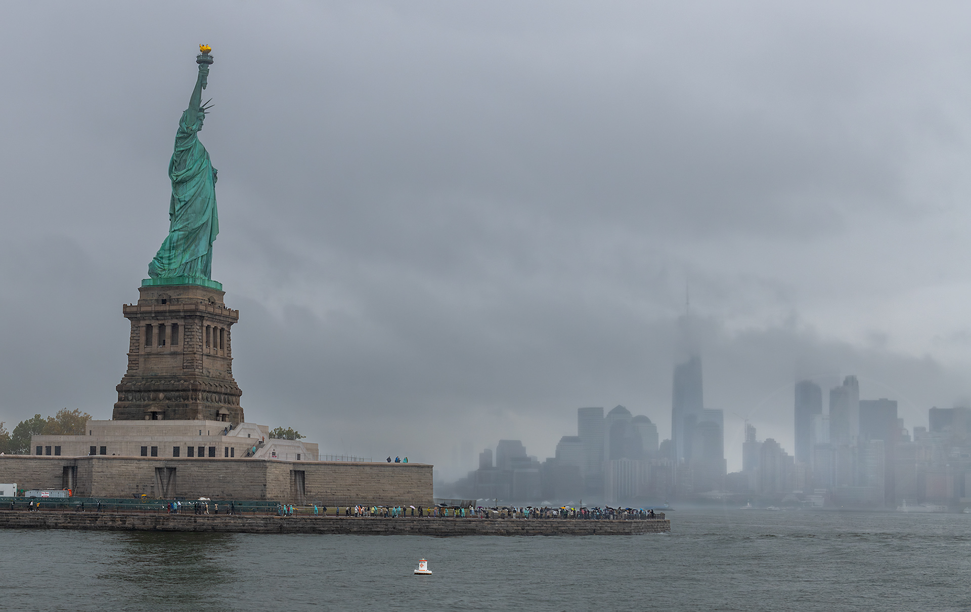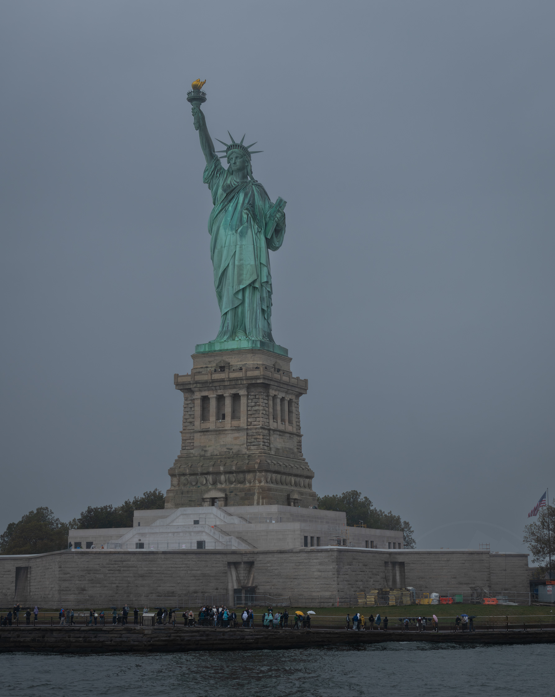 The Statue of Liberty stands out beautifully against a grey, overcast sky—and if you need protection from the rain, the ponchos sold on site are surprisingly good. Seeing the Statue of Liberty in real life is a special experience, one that genuinely feels essential.